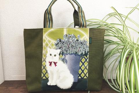 手提げ 白猫とペペロミア